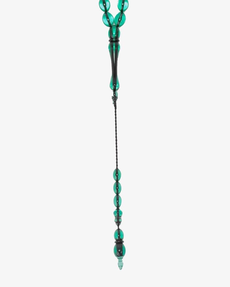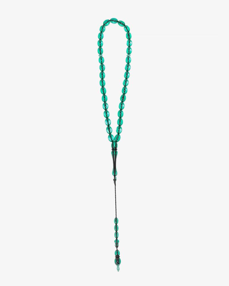 سبحة بكلايت بلون اخضر شفاف مميزة تركية الصنع، مصقولة بإتقان دائرية الشكل ناعمة الملمس بألوان جذابة بها 33 خرزة 9 ملم بخيط بلون اسود ، صممت لإظهار اناقة مالكها وقوة حضوره واناقته وذوقه الرفيع من أكثر انواع السبح البكلايت جمالا وأناقة ورسمية في لونه ومظهرها لتناسب جميع الاذواق.