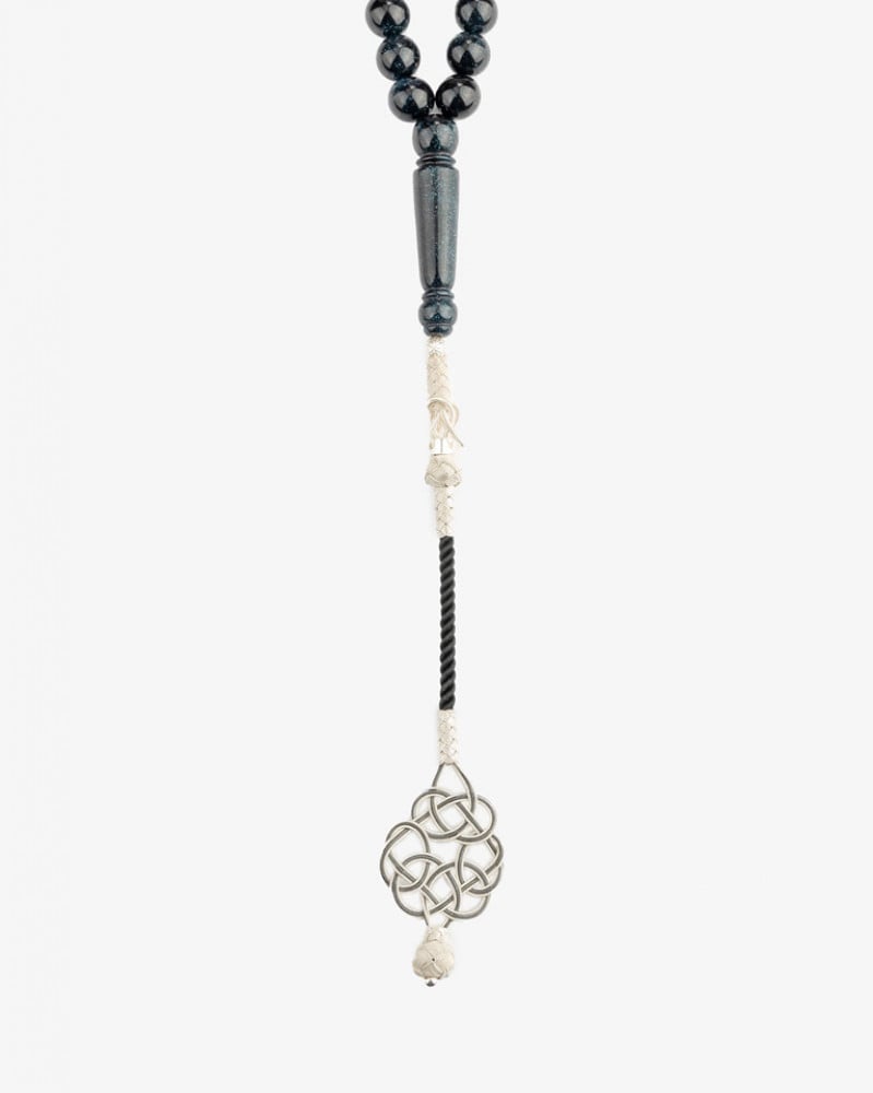 سبحة بكلايت بلون كحلي بلمعة مميزة وشرابة من الفضة عيار 1000 الفخمة، مصقولة بإتقان دائرية الشكل ناعمة الملمس بألوان جذابة بها 51 خرزة 10 ملم ، صممت لإظهار اناقة مالكها وقوة حضوره واناقته وذوقه الرفيع من أكثر انواع السبح البكلايت جمالا وأناقة ورسمية في لونه ومظهرها لتناسب جميع الاذواق.