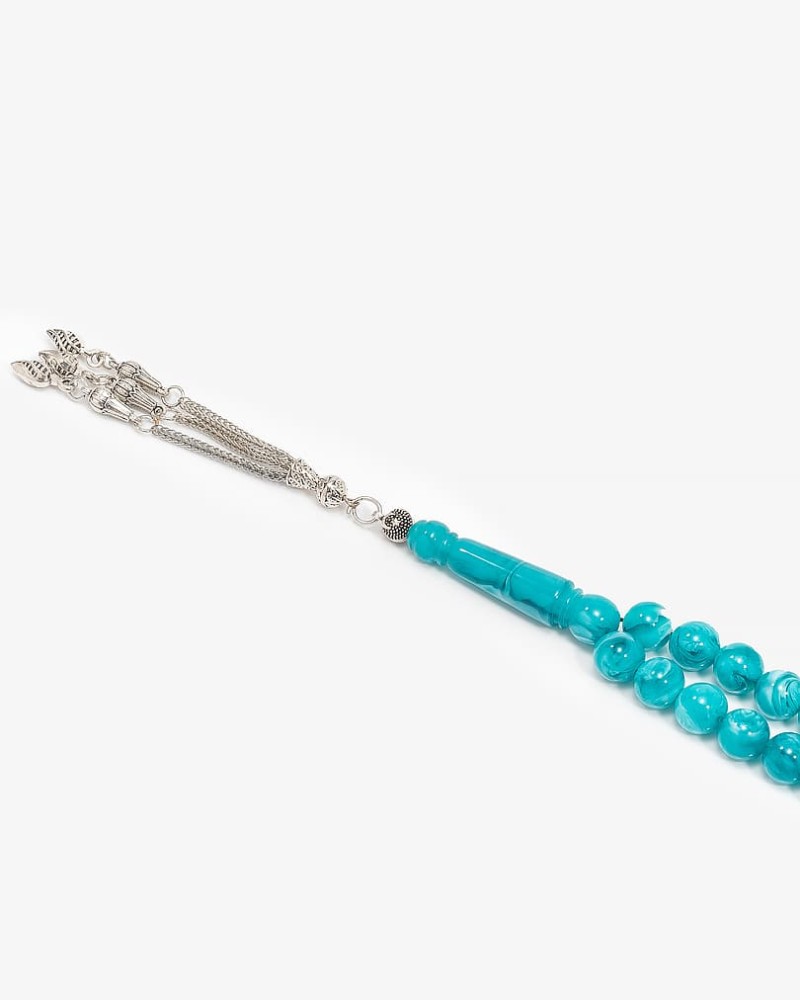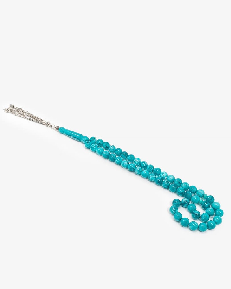 سبحة بكلايت بلون تركوازي بعروق مميزة وشرابة من المعدن، مصقولة بإتقان دائرية الشكل ناعمة الملمس بألوان جذابة بها 51 خرزة 10 ملم ، صممت لإظهار اناقة مالكها وقوة حضوره واناقته وذوقه الرفيع من أكثر انواع السبح البكلايت جمالا وأناقة ورسمية في لونه ومظهرها لتناسب جميع الاذواق.