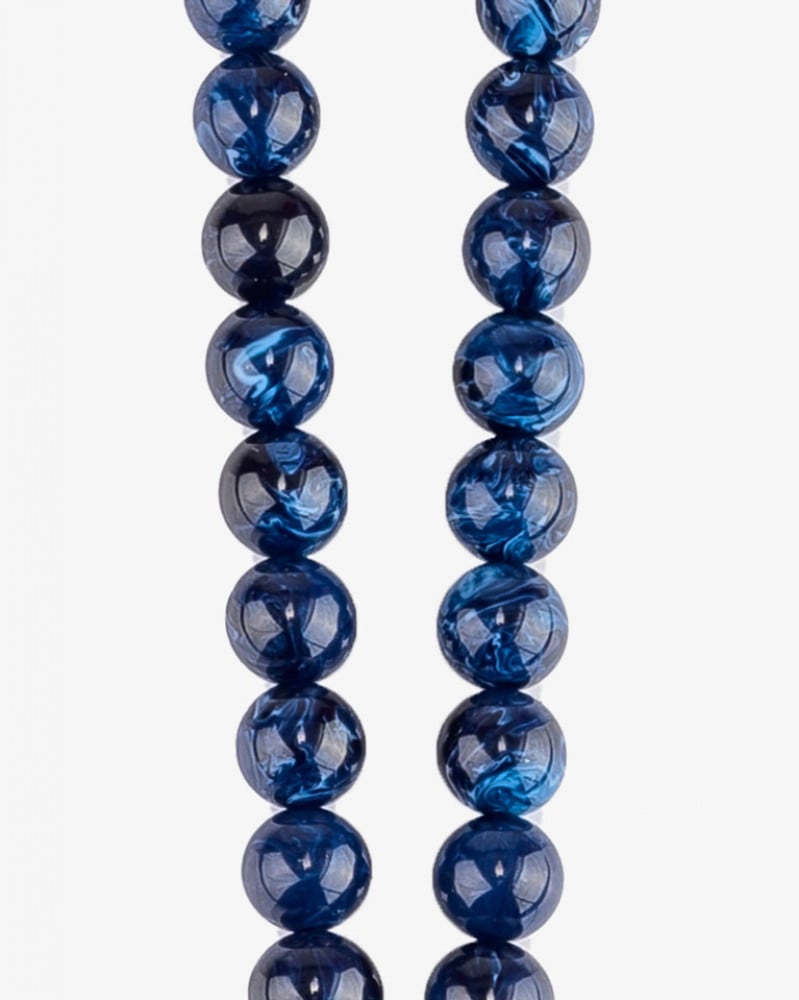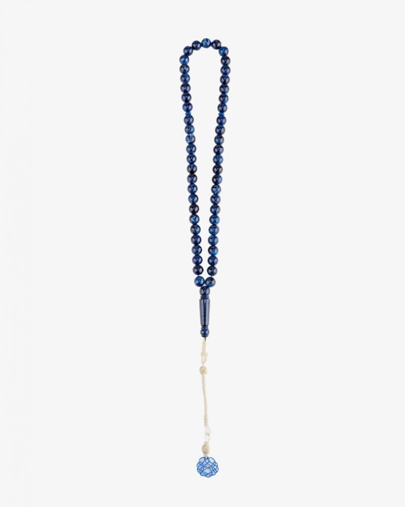 سبحة بكلايت بلون ازرق غامق بعروق مميزة وشرابة من الفضة عيار 1000 الفخمة، مصقولة بإتقان دائرية الشكل ناعمة الملمس بألوان جذابة بها 51 خرزة 10 ملم ، صممت لإظهار اناقة مالكها وقوة حضوره واناقته وذوقه الرفيع من أكثر انواع السبح البكلايت جمالا وأناقة ورسمية في لونه ومظهرها لتناسب جميع الاذواق.