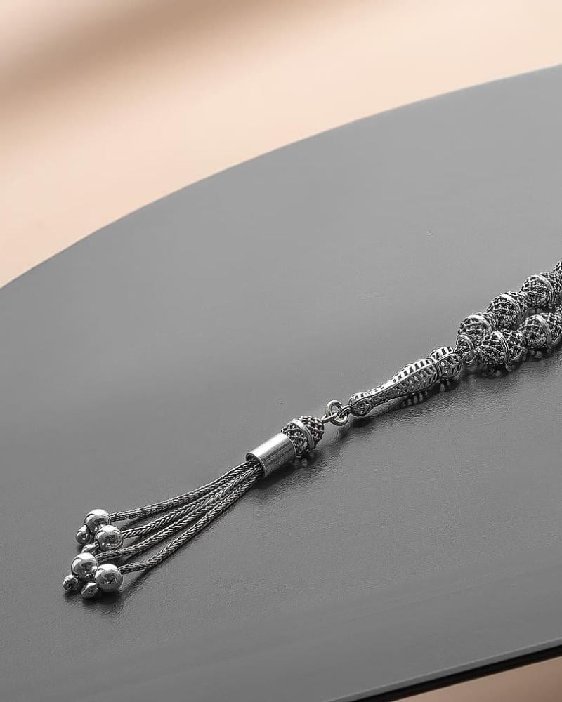 سبحة بيضاوية من الفضة الخالصة عيار 925