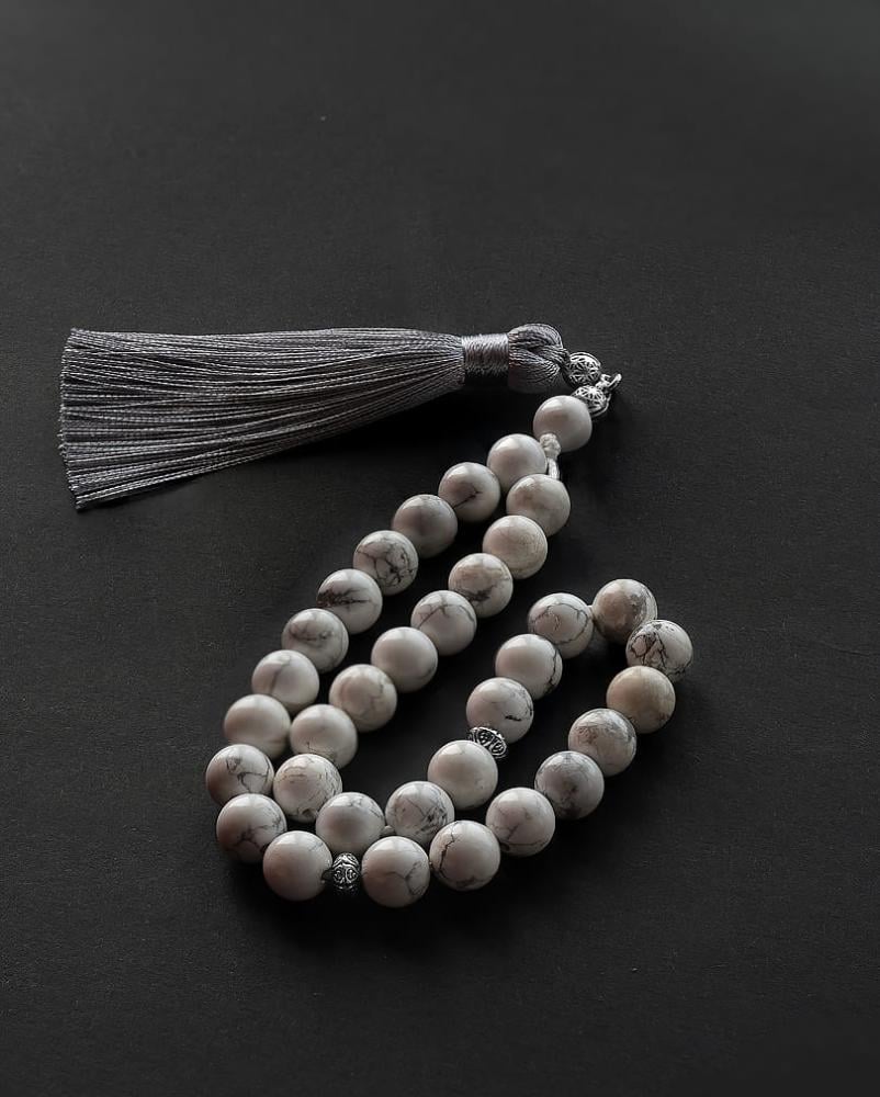 تألق بسبحة فخمة مصنوعة من حجر جاموس الابيض ( هولايت )، مزينة بإتقان ودقة. تتميز هذه السبحة بحجرها الدائري الناعم والملمس الرائع، وبألوانها الجذابة التي تضفي جمالاً لا مثيل له. صممت هذه السبحة لتبرز أناقة وقوة وذوق مالكها، وتعكس رقيه وأناقته بشكل لافت. تتميز برسميتها وجمالها في اللون والمظهر. فهي مثالية لتناسب جميع الأذواق والأعمار، وستضفي لمسة من الفخامة والجمال على إطلالتك.