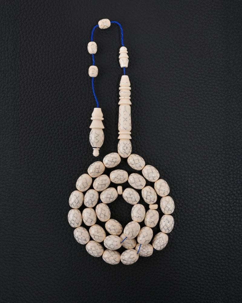 تتميز هذه السبحة النادرة من العاج بلونها الأبيض الفاخر ذو الشكل البرميلي المذهل المطعم بالفضة. صُنعت بعناية وحرفية عالية من قبل أمهر صانعي السبح في العالم، لتبرز أناقة وجمال مالكها. تصميمها الراقي والرسمي يضفي عليها مظهراً أنيقاً ومميزاً يناسب جميع الأذواق. احصل على هذه السبحة الفريدة واجعلها جزءاً من إطلالتك الأنيقة والمميزة.