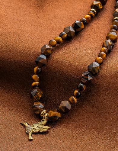 عقد نسائي حجر عين النمر ولؤلؤ ( مطلي ذهب )