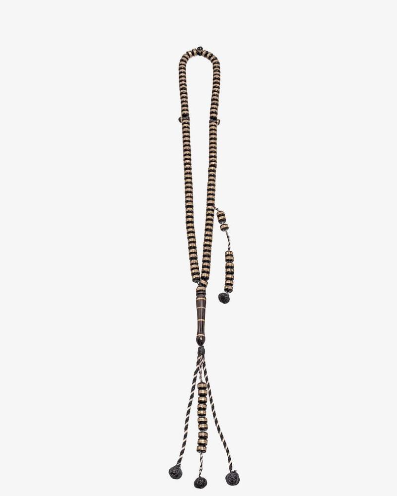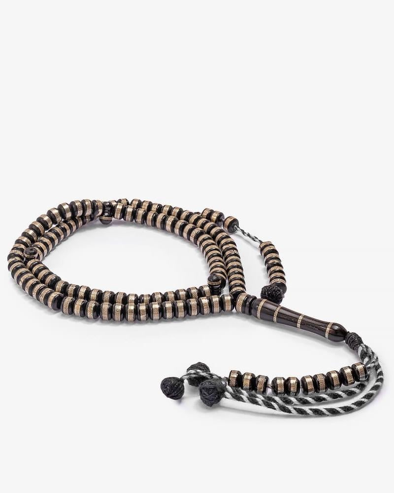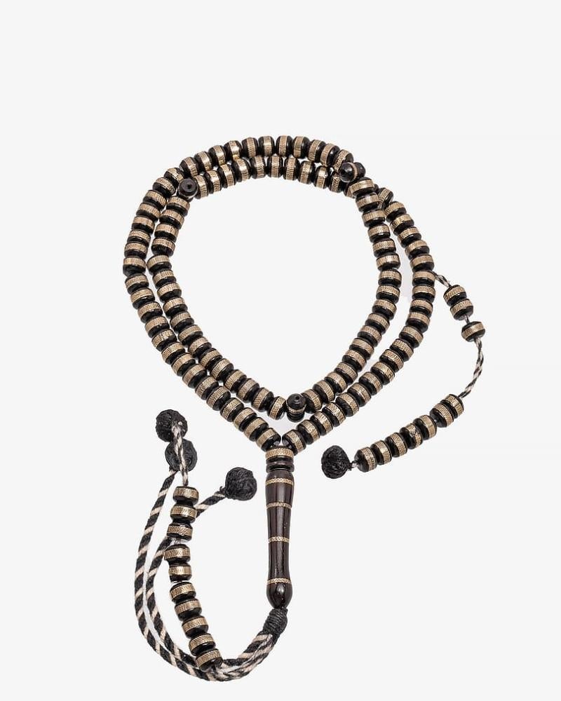 سبحة من الكوك المصنوعة من خشب الطبيعي منقوش بمعدن , بتقطيع دائري متجانس ناعمة الملمس ، صممت لإظهار اناقة مالكها، تتميز بحقيقة احتفاظها برائحة العطر مدة طويلة. من السبح الأكثر شهرة المميزة بخشبها الذي يستمر لوقت طويل حاملا نفس جودتها بها 99 خرزه 7 ملم وزنها 35 جرام، جميلة وانيقة ورسمية في لونها ومظهرها لإطالة مميزة لتناسب جميع الاذواق.