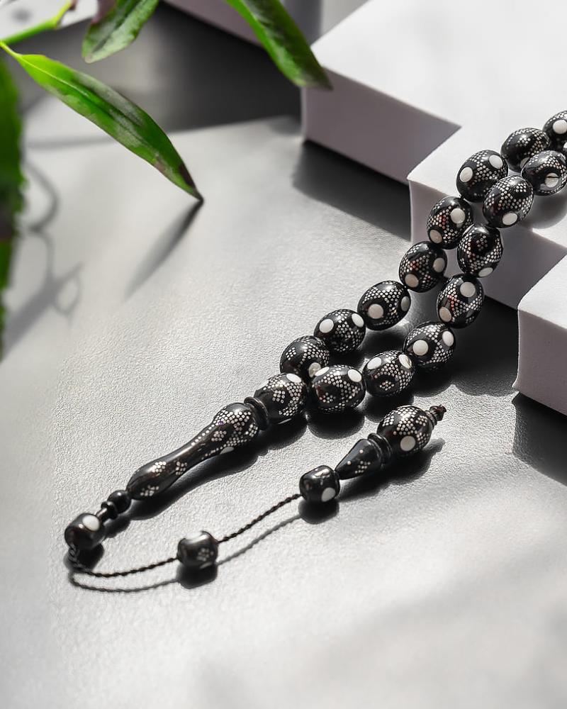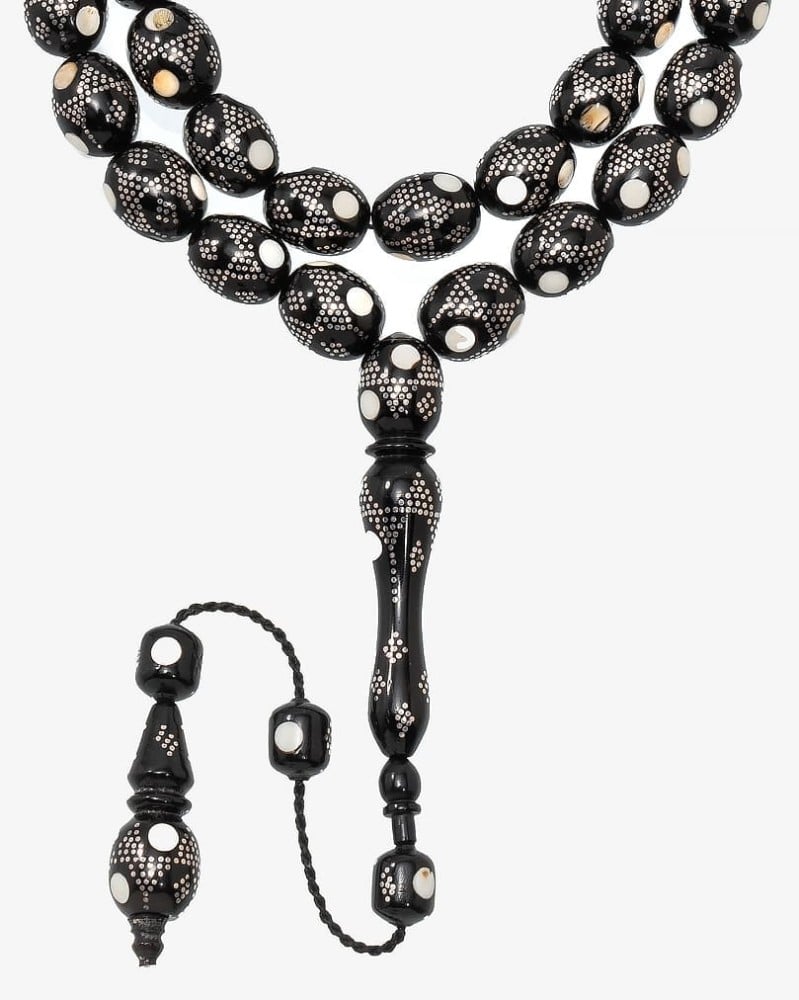 سبحة كوك طبيعي مزين بالفضة وعاج