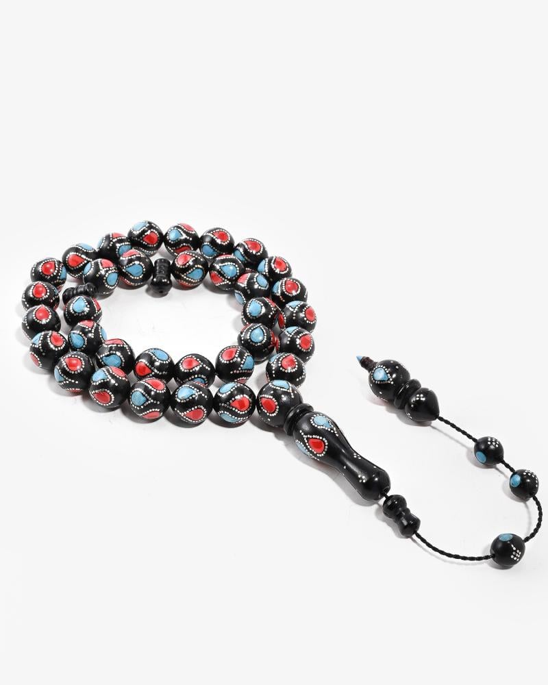 تلك السبحة الفخمة من الكوك الطبيعي المنقوشة بالفيروز الفضة والمرجان , تعتبر قطعة فنية رائعة تضفي لمسة من الأناقة والفخامة على الإطلالة. تصميمها الدائري الناعم يجعلها مريحة للاستخدام ومناسبة للصلاة والذكر. كما أن الفضة المستخدمة في تصميمها تضفي لمعانًا جميلاً ولمسة من الفخامة. هذه السبحة تعتبر هدية مثالية لأحبائك ولأولئك الذين يبحثون عن قطعة مميزة وفاخرة للاستخدام اليومي أو في المناسبات الخاصة.