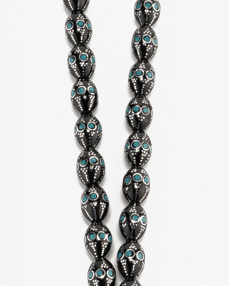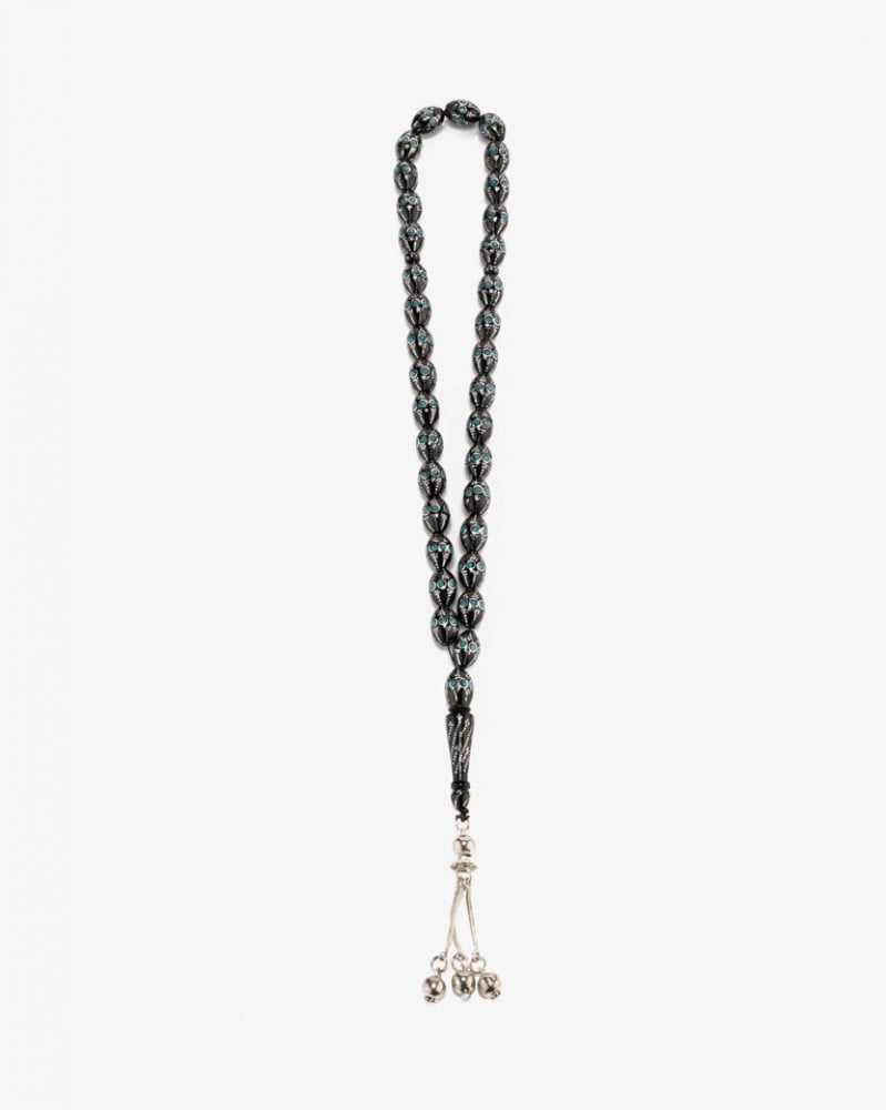 سبحة فاخرة من الكوك منقوش بفضة المصنوعة من خشب الطبيعي. بتقطيع بيضاوي متجانس ناعمة الملمس مزينة بشرابة من الفضة، صممت لإظهار اناقة مالكها، تتميز بحقيقة احتفاظها برائحة العطر مدة طويلة. من السبح الأكثر شهرة المميزة بخشبها الذي يستمر لوقت طويل حاملا نفس جودتها بها 33 خرزه 10 ملم، جميلة وانيقة ورسمية في لونها ومظهرها لإطالة مميزة لتناسب جميع الاذواق
