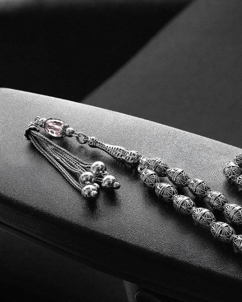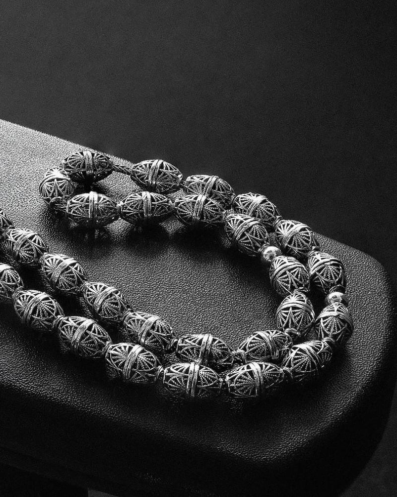 سبحة منقوشة من الفضة الخالصة عيار 925