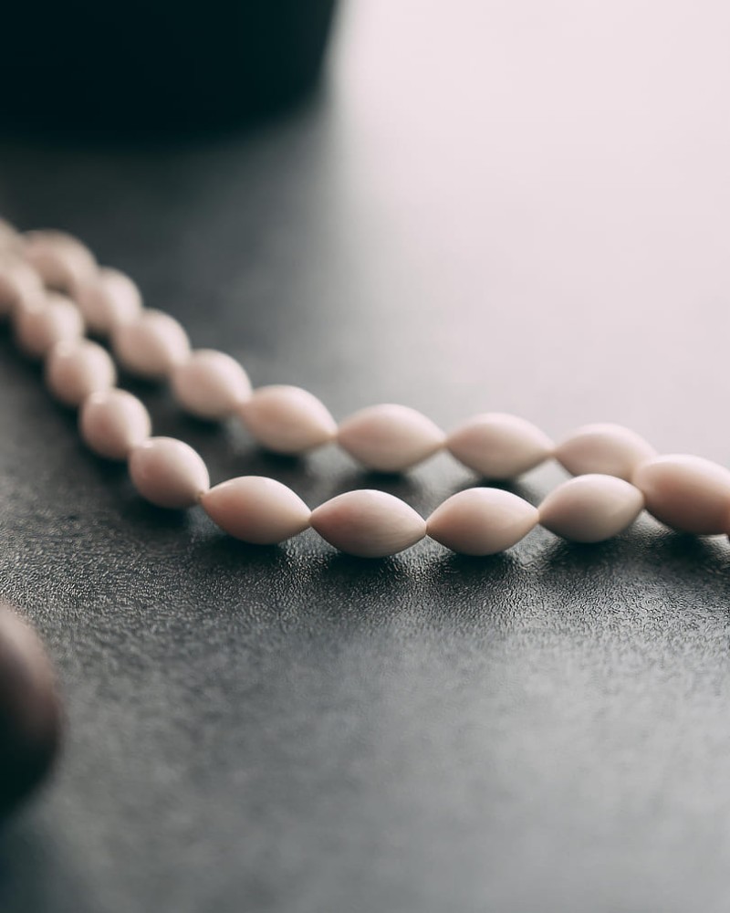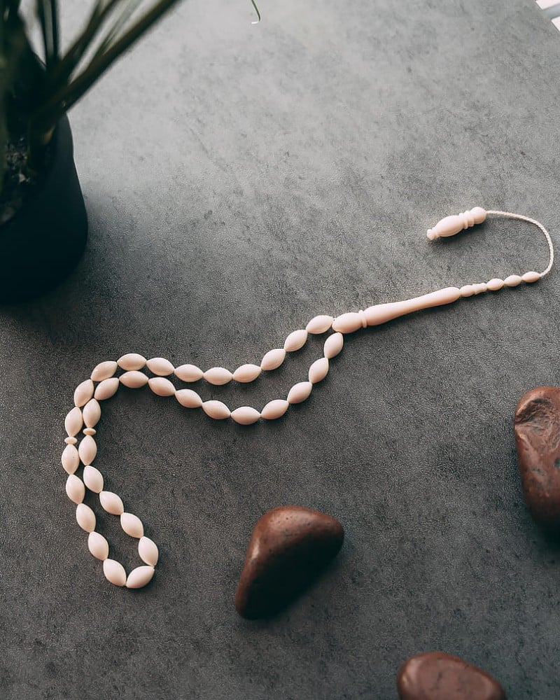 سبحة نادرة من العاج (ناب الفيل) بلون ابيض , مخروطة بشكل زيتوني متجانس ناعمة الملمس صناعة يدوية، صممت لإظهار اناقة مالكها من السبح الأكثر شهرة المميزة بالعاج (ناب الفيل) الذي يستمر لوقت طويل حاملا نفس جودتها بها 33 خرزه 7 ملم وزنها 21 جرام، جميلة وانيقة ورسمية في لونها ومظهرها لإطالة مميزة لتناسب جميع الاذواق.