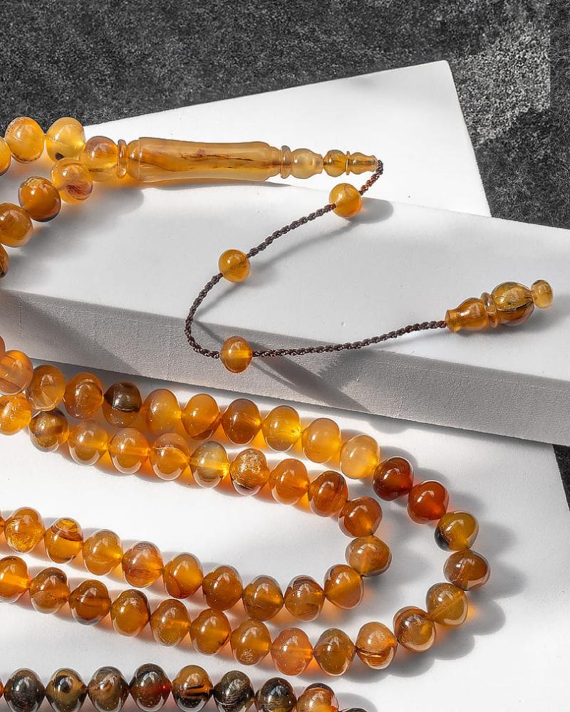 سبحة نادرة مصنوعة من قرن ضان الفاخرة ، تتميز بتفاصيلها الجميلة منحوتة بطريقة رائعة واتقان ناعمة الملمس، مما يضفي لمسة فخامة على مظهرها. تصميمها الراقي والجميل يجعلها مثالية لتكون إكسسوارًا أنيقًا ورسميًا يلفت الأنظار. باللون الفخم والمظهر الفاخر، فهى تضيف لمسة من الأناقة والجمال إلى إطلالتك.