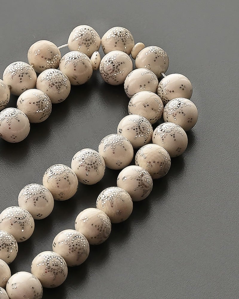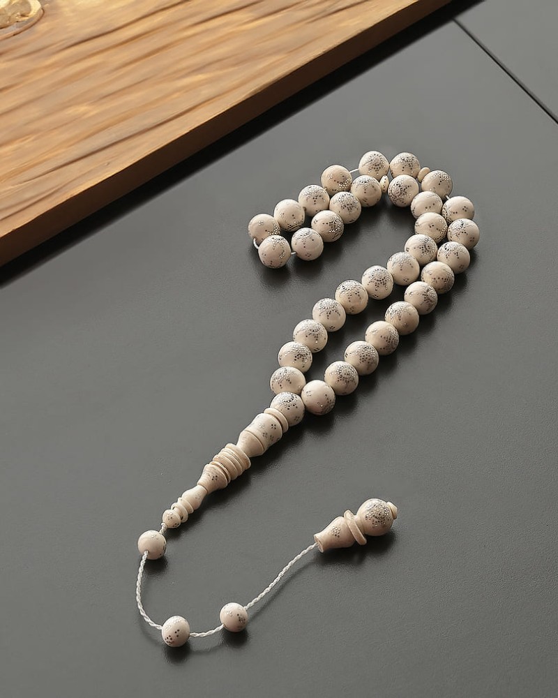 سبحة نادرة من عاج ناب الفيل الفاخر، مرصعة بالفضة الخالصة، تأسر الأنظار بتصميمها الرائع والمتقن. تتميز بشكلها المخروطي الدائري الذي يضفي عليها لمسة من الأناقة والجمال. صنعت هذه السبحة بدقة واهتمام كبير عن طريق أفضل الحرفيين، لتبرز أناقة وذوق مالكها. تتميز بلونها الرسمي ومظهرها الجذاب، مما يجعلها مثالية لتكون إكسسواراً مميزاً وراقياً لكل من يرتديها. إنها ليست مجرد سبحة بل قطعة فنية تشع بالجمال والفخامة.