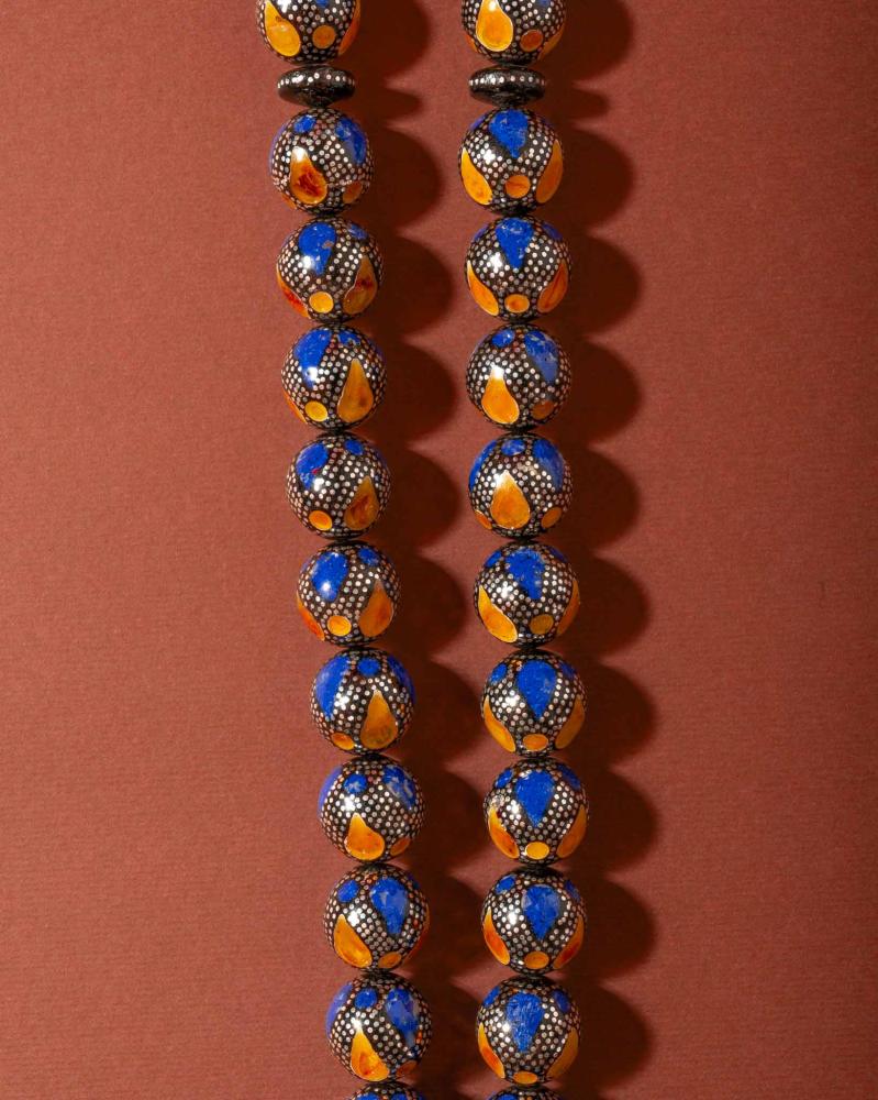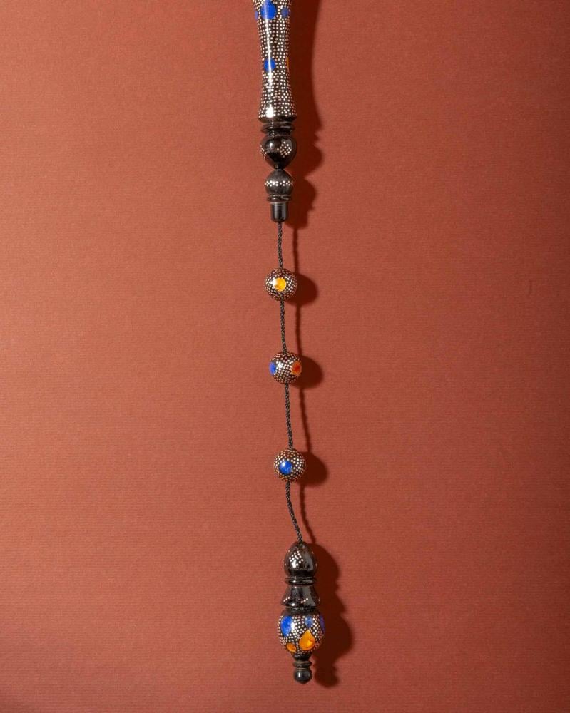سبحة يسرمزخرفة بفضة ولازورد وشبيه الكهرمان