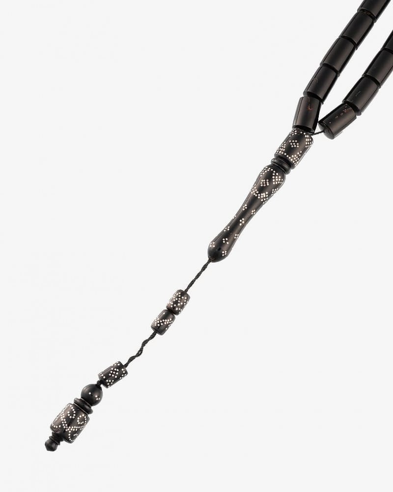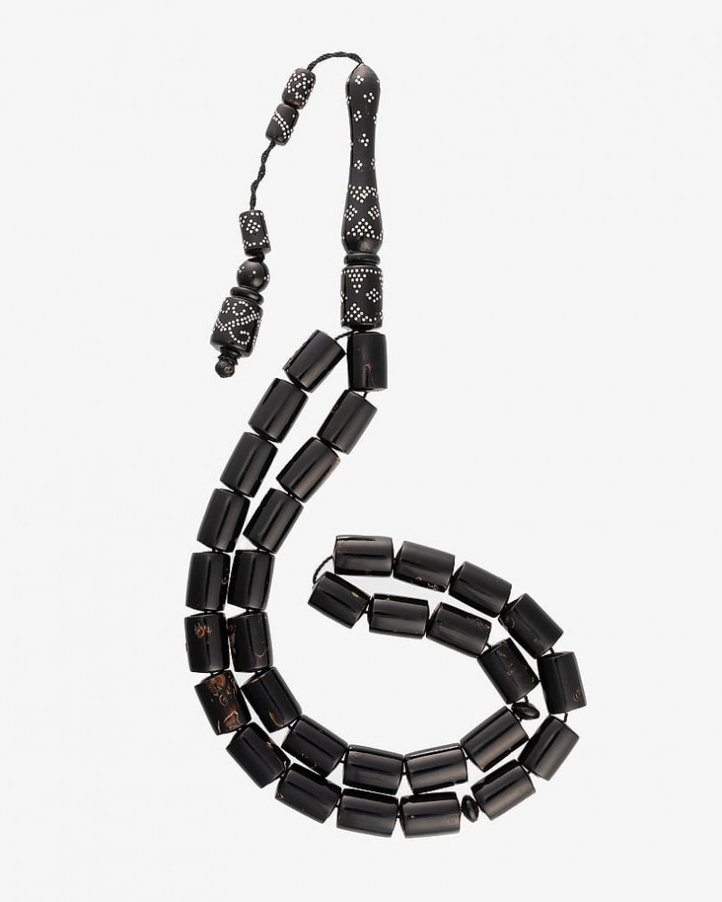 سبحة نادرة من يسر بحر الاحمر بنقش الفضة , بتقطيع مربع متجانس ناعمة الملمس مزينة بشرابة مطعمة بالفضة عيار 925، صممت لإظهار اناقة مالكها، تتميز بحقيقة احتفاظها برائحة العطر مدة طويلة. من السبح الأكثر شهرة المميزة بخشبها الذي يستمر لوقت طويل حاملا نفس جودتها بها 33 خرزه 10 ملم، جميلة وانيقة ورسمية في لونها ومظهرها لإطالة مميزة لتناسب جميع الاذواق.