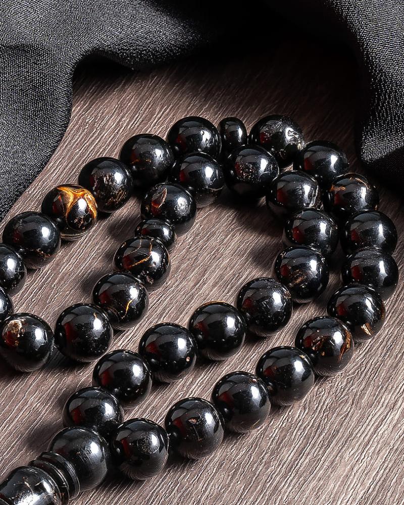 سبحة فاخرة ونادرة من اليسر الطبيعي الفاخر، تتميز بشكل دائري متجانس يجعلها تبدو بلا مثيل. تم صنع هذه السبحة يدوياً لتبرز أناقة وفخامة مالكها، وتضفي لمسة من الأناقة والجمال على إطلالته. تصميم رائع يناسب جميع الأذواق ويضفي لمسة من الجمال والتميز على مظهرك. لا شك أن هذه السبحة ستكون إضافة رائعة ومميزة لمجموعتك الخاصة.