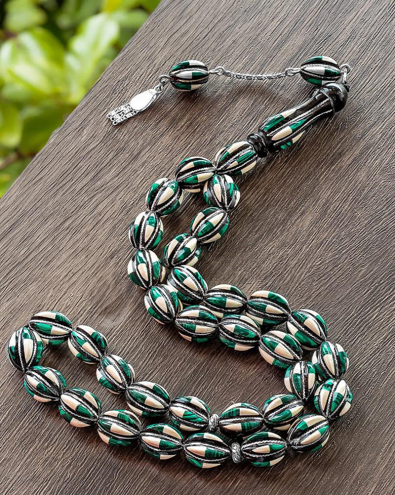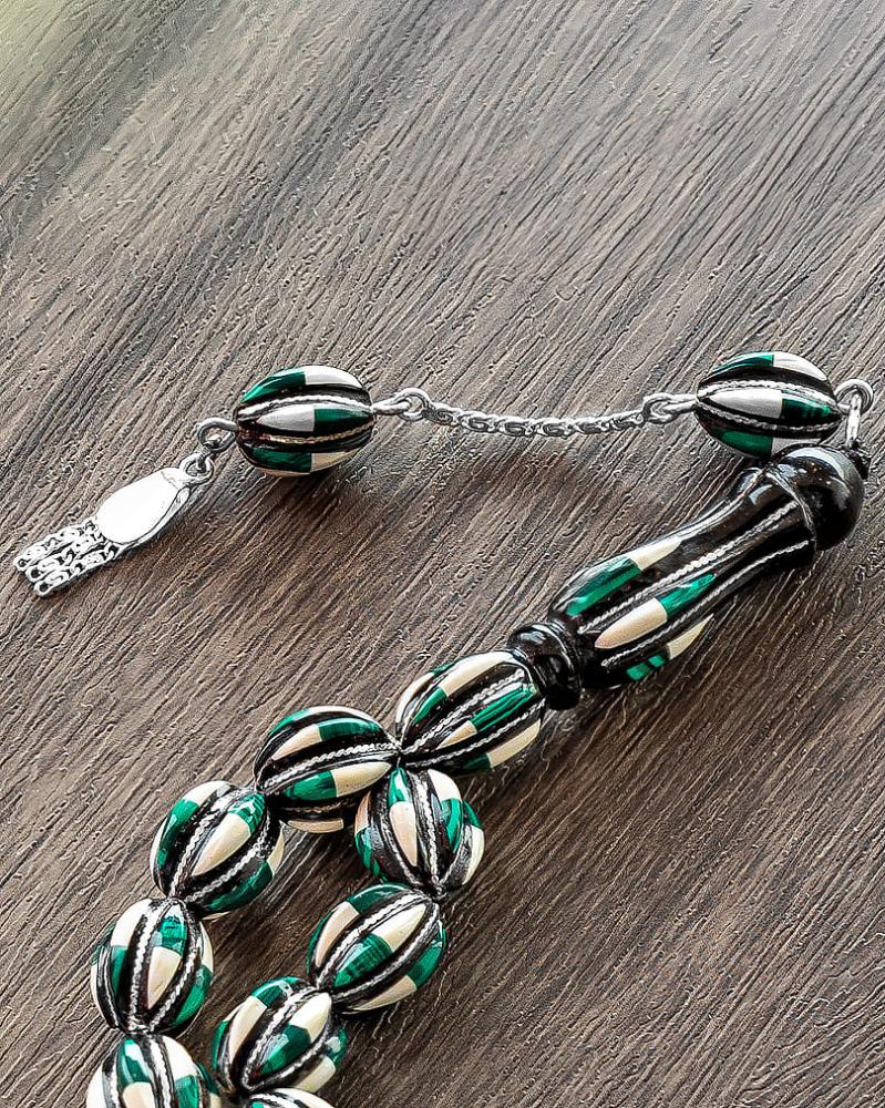 سبحة يسر فضة شبيه العاج والملاكيت