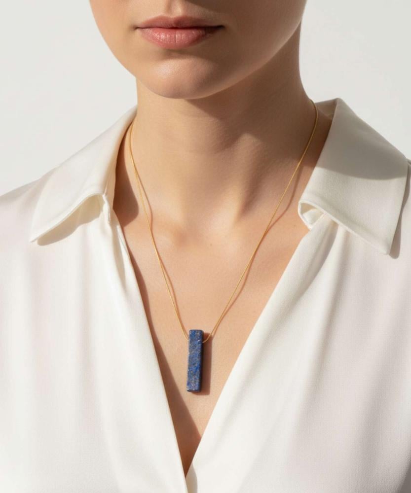 قلادة سلسلة انيقه للغايه من حجر لازورد الطبيعي, تتميز بتصميمها الراقي الذى يمنحك اطلالة مميزه ومبهره , حجر لازورد ازرق يمتاز بلونه الانيق والذي تفضله الكثير من النساء كونه يضيف بريقا استثنائيا لتتألقي بلمسة أنثوية خاصة بين الحشود ,ويتميز الحجر بصلابته وملمسه الناعم للغاية , ومناسب لجميع الاعمار والاذواق.