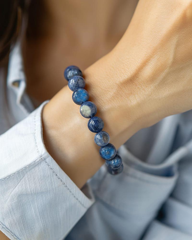 سوار حجر طبيعي اللازورد أزرق (درجة ثانية) , مصنوع باتقان بطريقة احترافية دائرية الشكل ناعمة الملمس , يتميز بإغلاق دائري حول المعصم 8 ملم يحافظ على تثبيته بإحكام , مُصمم ليُكمل أناقة أي زي بلمسة من الرقي مناسب لجميع الاذواق.