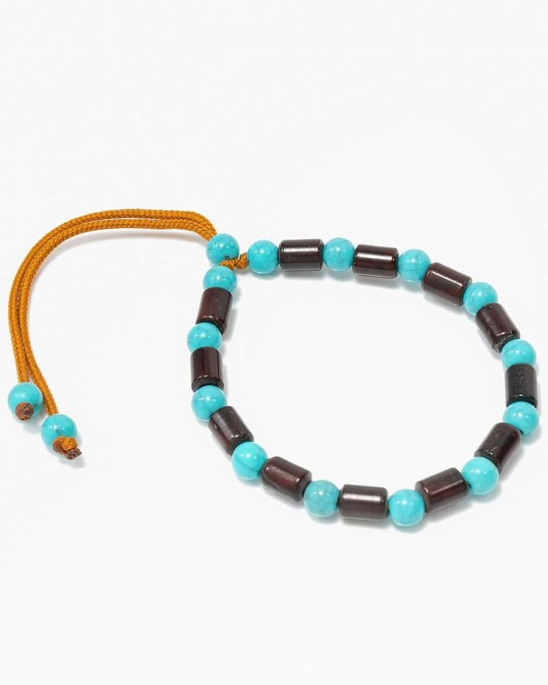 سوار معصم رجالي كاجوال, بتصميم سهل الارتداء مصنوع من حجر فيروز وكوك بطريقة احترافية محكم بخيط بلون بني, مُصمم ليظهر جمال معصمك فهي تمنحك المظهر العصري المتألق الجذاب الراقي , لجميع الاذواق والاعمار وتصلح لجميع المناسبات.