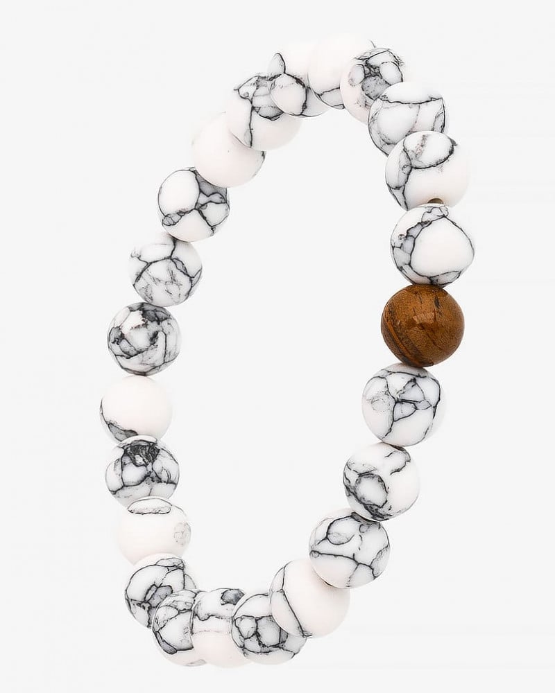 سوار حجر الهاوليت ابيض بعروق , مصنوع باتقان بطريقة احترافية دائرية الشكل ناعمة الملمس, يتميز بإغلاق دائري حول المعصم يحافظ على تثبيته بإحكام , مُصمم ليُكمل أناقة أي زي بلمسة من الرقي.