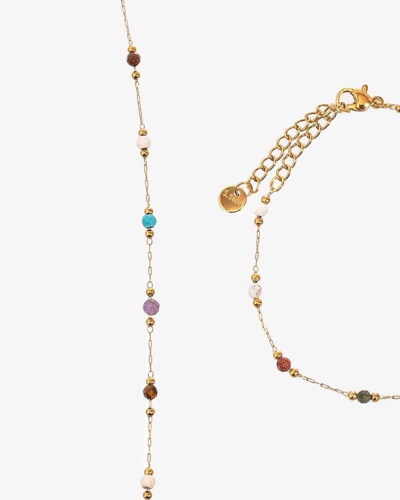 🔗 السلسلة الفضية بتصميم ناعم مزينة بحبات من حجر عين النمر البني اللامع تضيف لمسة دافئة وجاذبية طبيعية.