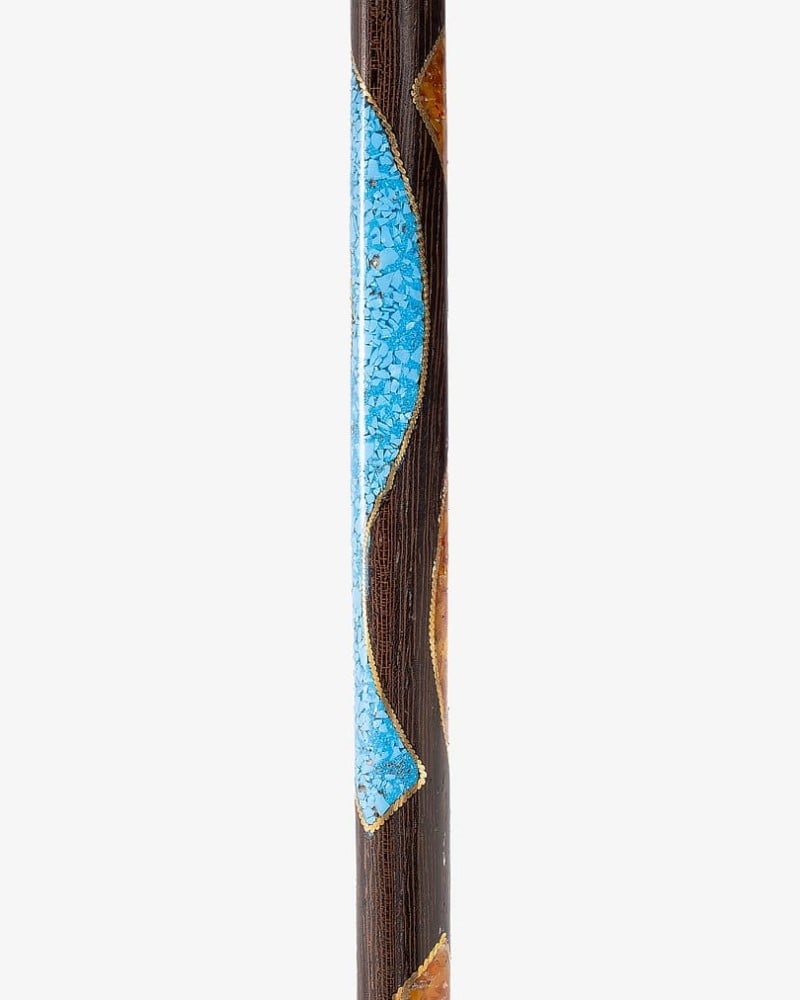 عصا عكاز فاخر بني مصنوع من خشب الابانوس الطبيعي ,أنيقة شبيه الكهرمان والفيروز بمقبض طولي مزينة من النحاس ناعمة الملمس ,صناعة يدوية مصقولة بإتقان على ايدي امهر الحرفيين المختصين في تصنيع عصا العكاز الاخشاب الطبيعية , متعددة الاستخدام خفيف الوزن بطول 92 سم ,تصلح في المناسبات الاجتماعية لجميع الاذواق