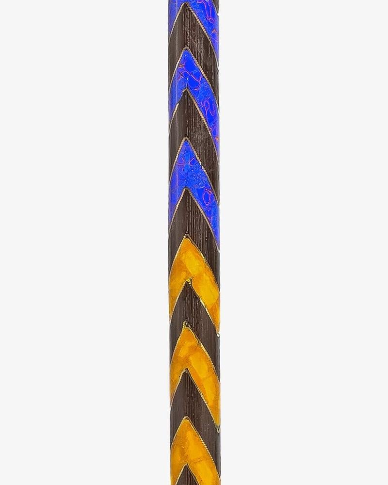 عصا عكاز من خشب ايبانوس طبيعي مزين شبيه الكهرمان ولازورد, منقوش بنحاس بطريقة احترافية ناعمة الملمس ,بمقبض طولي صناعة يدوية على ايدي امهر الحرفيين المتخصين في تصنيع عصا العكاز الاخشاب الطبيعية ,وتم صقلها بإحترافية متعددة الاستخدام بطول 95 سم سميكة ,تصلح في المناسبات الاجتماعية لجميع الاذواق.