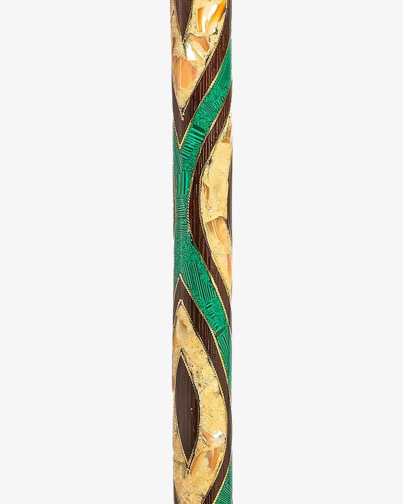 عصا عكاز من خشب ايبانوس طبيعي مزين شبيه ملاكيت وصدف, منقوش بنحاس بطريقة احترافية ناعمة الملمس ,بمقبض طولي صناعة يدوية على ايدي امهر الحرفيين المتخصين في تصنيع عصا العكاز الاخشاب الطبيعية ,وتم صقلها بإحترافية متعددة الاستخدام بطول 95 سم سميكة ,تصلح في المناسبات الاجتماعية لجميع الاذواق
