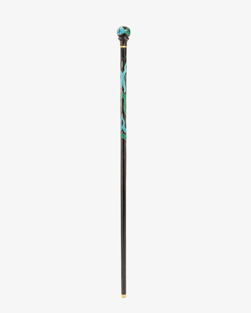 عصا عكاز من خشب ايبانوس طبيعي انيق, مرصع شبيه ملاكيت وفيروز بطريقة احترافية ناعمة الملمس ,بمقبض دائري صناعة يدوية على ايدي امهر الحرفيين المتخصين في تصنيع عصا العكاز الاخشاب الطبيعية ,وتم صقلها بإحترافية متعددة الاستخدام سميكة وطولها 96 سم ,تصلح في المناسبات الاجتماعية لجميع الاذواق.