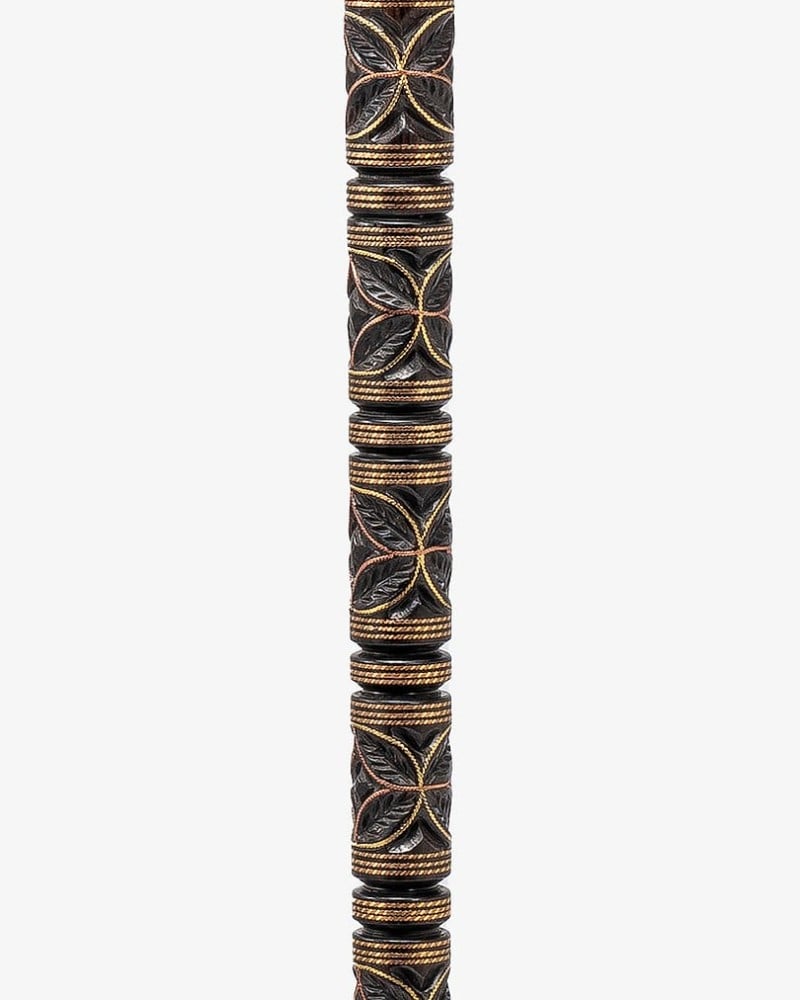 عصا عكاز من خشب ايبانوس طبيعي فاخر, بنحت يدوي بارز من المعدن والنحاس بطريقة احترافية ناعمة الملمس ,بمقبض طولي صناعة يدوية على ايدي امهر الحرفيين المتخصين في تصنيع عصا العكاز الاخشاب الطبيعية ,وتم صقلها بإحترافية سميكة متعددة الاستخدام ,تصلح في المناسبات الاجتماعية لجميع الاذواق.