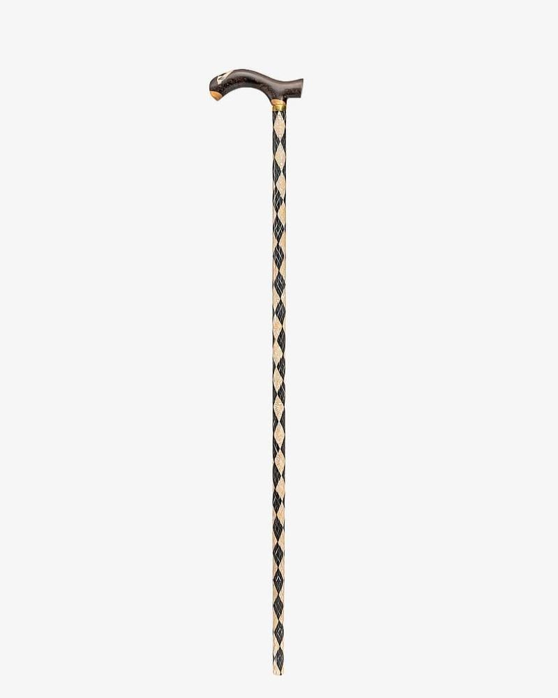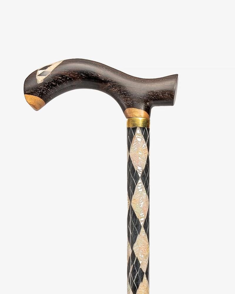 عصا عكاز من خشب ايبانوس طبيعي انيق, مرصع بصدف صناعي بطريقة احترافية ناعمة الملمس ,بمقبض طولي صناعة يدوية على ايدي امهر الحرفيين المتخصين في تصنيع عصا العكاز الاخشاب الطبيعية ,وتم صقلها بإحترافية متعددة الاستخدام طولها 95 سم ,تصلح في المناسبات الاجتماعية لجميع الاذواق.