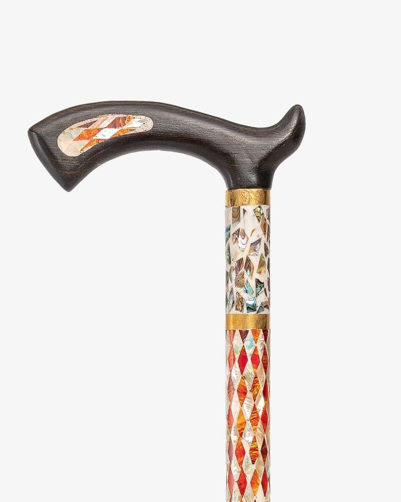 عصا عكاز من خشب ايبانوس طبيعي انيق, مرصع بصدف طبيعي بطريقة احترافية ناعمة الملمس ,بمقبض طولي صناعة يدوية على ايدي امهر الحرفيين المتخصصين في تصنيع عصا العكاز الاخشاب الطبيعية ,وتم صقلها بإحترافية متعددة الاستخدام طولها 94 سم,تصلح في المناسبات الاجتماعية لجميع الاذواق.
