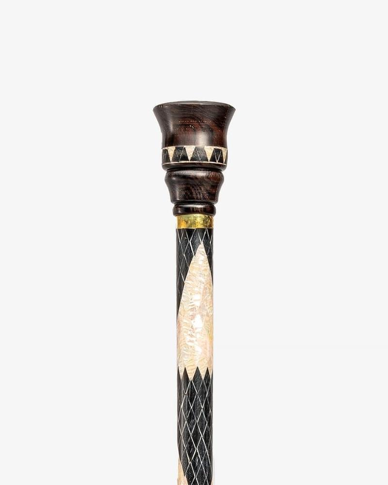 عصا عكاز خشب ايبانوس منقوش بصدف صناعي أنيق
