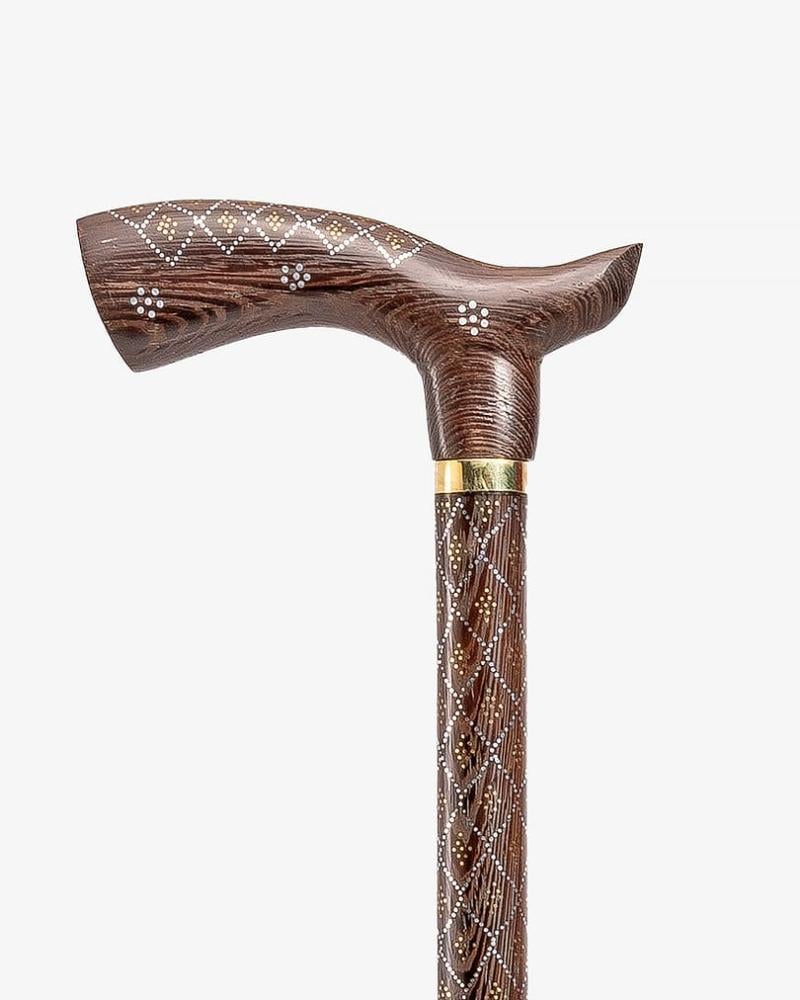عصا عكاز من خشب فينجي طبيعي ,بنقش من النحاس ناعمة الملمس ,بمقبض طولي صناعة يدوية على ايدي امهر الحرفيين المتخصصين في تصنيع عصا العكاز الاخشاب الطبيعية ,وتم صقلها بإحترافية متعددة الاستخدام بطول 95 سم سميك ,تصلح في المناسبات الاجتماعية لجميع الاذواق.