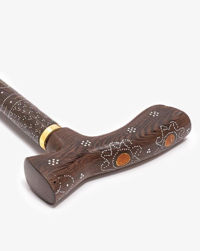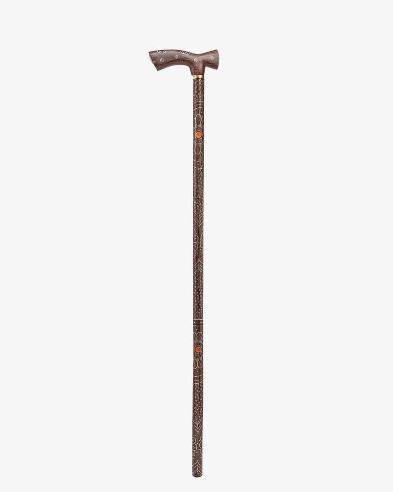 عصا عكاز من خشب فينجي طبيعي فاخر,مزخرف بحجر شبيه الكهرمان وبنقش من النحاس ناعمة الملمس ,بمقبض طولي صناعة يدوية على ايدي امهر الحرفيين المتخصصين في تصنيع عصا العكاز الاخشاب الطبيعية ,وتم صقلها بإحترافية متعددة الاستخدام بطول 96 سم سميك ,تصلح في المناسبات الاجتماعية لجميع الاذواق.