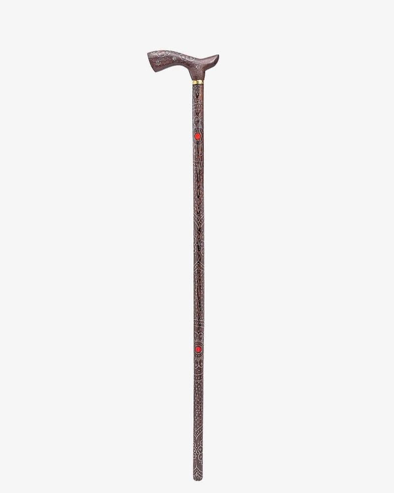 عصا عكاز من خشب فينجي طبيعي ,مزين شبيه مرجان الاحمر وبنقش من النحاس ناعمة الملمس ,بمقبض طولي صناعة يدوية على ايدي امهر الحرفيين المتخصصين في تصنيع عصا العكاز الاخشاب الطبيعية ,وتم صقلها بإحترافية متعددة الاستخدام بطول 95 سم سميك ,تصلح في المناسبات الاجتماعية لجميع الاذواق.