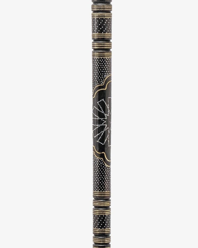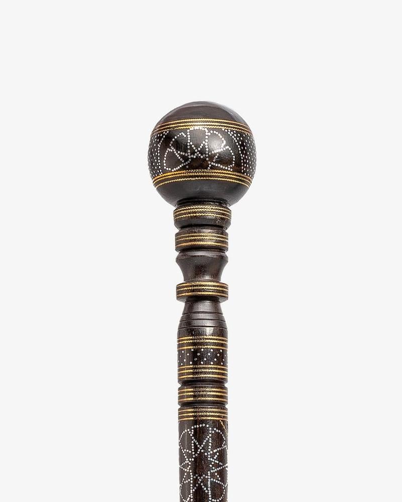 عصا عكاز فاخر من خشب ايبانوس طبيعي , منقوش بنحاس ومعدن بطريقة احترافية ناعمة الملمس ,بمقبض دائري صناعة يدوية على ايدي امهر الحرفيين المتخصين في تصنيع عصا العكاز الاخشاب الطبيعية ,وتم صقلها بإحترافية متعددة الاستخدام سميك بطول 94 سم ,تصلح في المناسبات الاجتماعية لجميع الاذواق