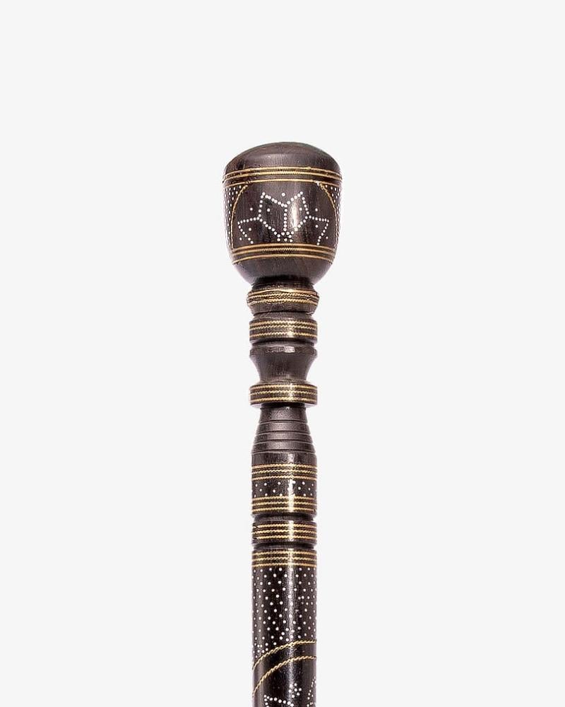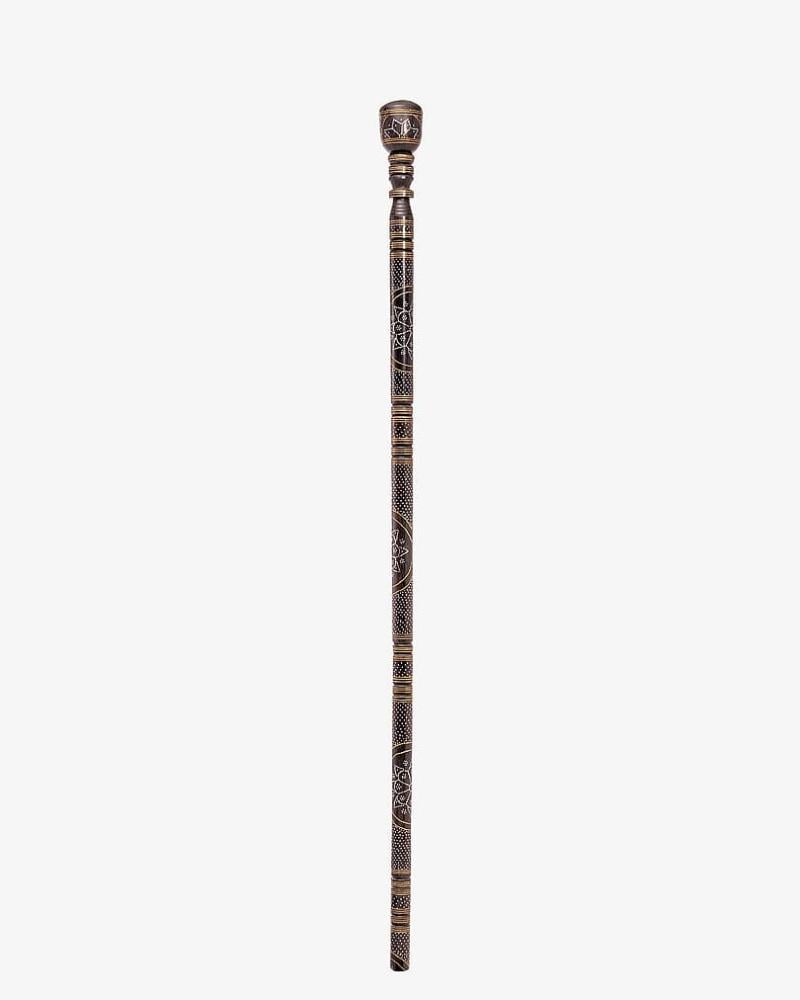 عصا عكاز فاخر من خشب ايبانوس طبيعي , منقوش بنحاس ومعدن بطريقة احترافية ناعمة الملمس ,بمقبض دائري صناعة يدوية على ايدي امهر الحرفيين المتخصين في تصنيع عصا العكاز الاخشاب الطبيعية ,وتم صقلها بإحترافية متعددة الاستخدام سميك بطول 97 سم ,تصلح في المناسبات الاجتماعية لجميع الاذواق.