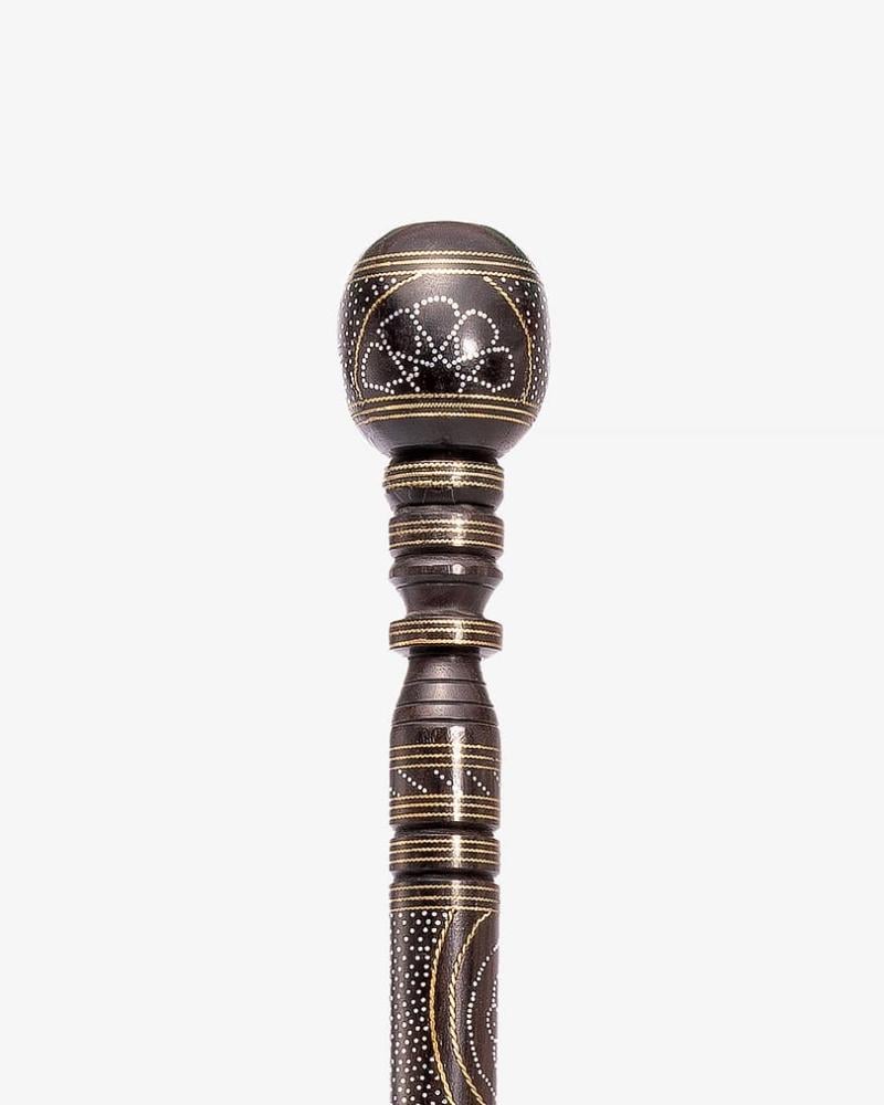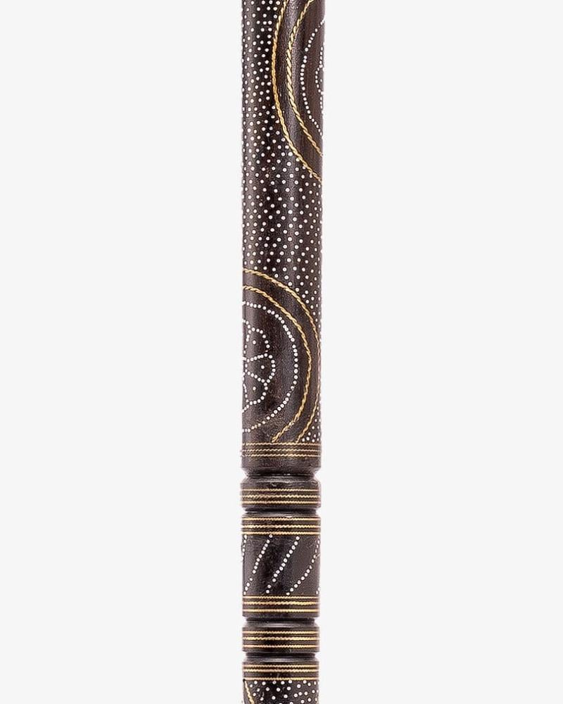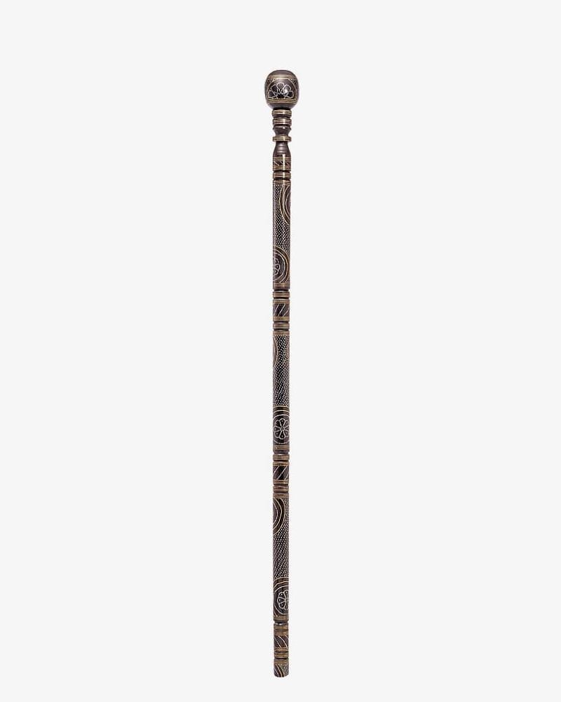 عصا عكاز فاخر من خشب ايبانوس طبيعي , منقوش بنحاس ومعدن بطريقة احترافية ناعمة الملمس ,بمقبض دائري صناعة يدوية على ايدي امهر الحرفيين المتخصين في تصنيع عصا العكاز الاخشاب الطبيعية ,وتم صقلها بإحترافية متعددة الاستخدام سميك بطول 99 سم ,تصلح في المناسبات الاجتماعية لجميع الاذواق.