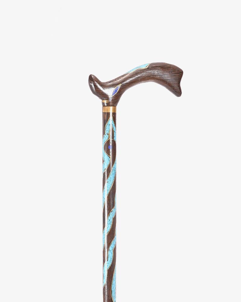 عصا عكاز فاخر من خشب فينجي طبيعي , مزين بالفيروز ولازورد وبمعدن مصقول بطريقة احترافية ناعمة الملمس ,بمقبض طولي ذو صناعة يدوية على ايدي امهر الحرفيين المتخصصين في تصنيع عصا العكاز الاخشاب الطبيعية ,وتم صقلها بإحترافية متعددة الاستخدام خفيفة الوزن وطولها 95 سم, تصلح في المناسبات الاجتماعية لجميع الاذواق.