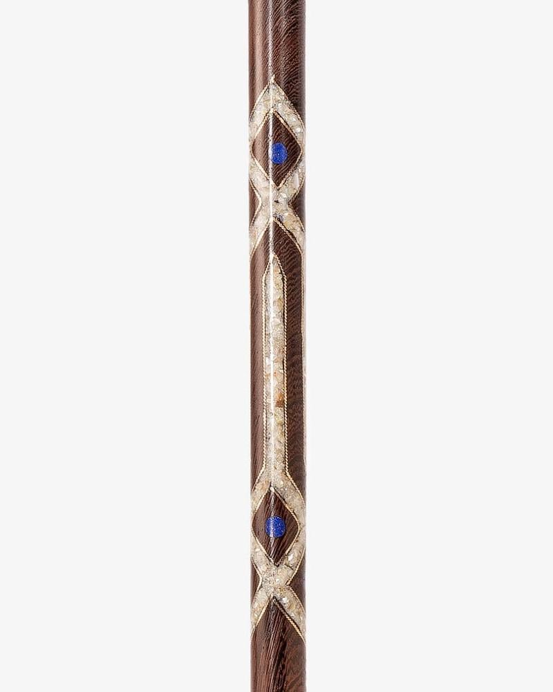 عصا عكاز فاخر من خشب فينجي طبيعي , مزين بالصدف واللازورد وبمعدن مصقول بطريقة احترافية ناعمة الملمس ,بمقبض دائري ذو صناعة يدوية على ايدي امهر الحرفيين المتخصصين في تصنيع عصا العكاز الاخشاب الطبيعية ,وتم صقلها بإحترافية متعددة الاستخدام وطولها 97سم, تصلح في المناسبات الاجتماعية لجميع الاذواق.