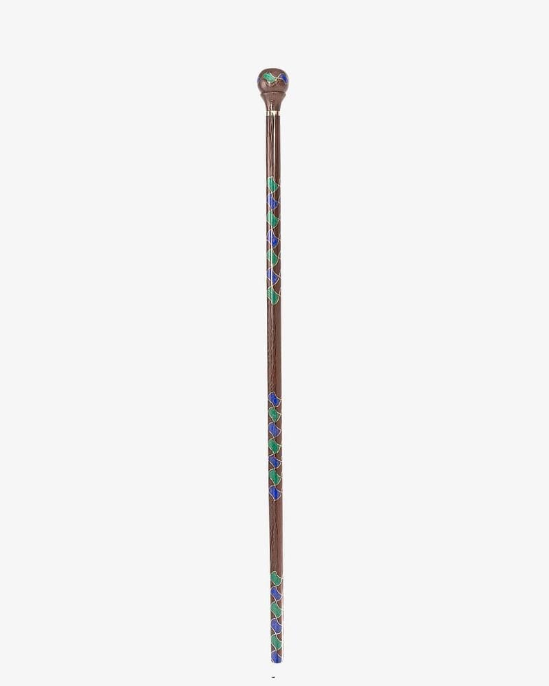 عصا عكاز فاخر من خشب فينجي طبيعي , مزين بالملاكيت واللازورد وبمعدن مصقول بطريقة احترافية ناعمة الملمس ,بمقبض دائري ذو صناعة يدوية على ايدي امهر الحرفيين المتخصصين في تصنيع عصا العكاز الاخشاب الطبيعية ,وتم صقلها بإحترافية متعددة الاستخدام وطولها 97 سم, تصلح في المناسبات الاجتماعية لجميع الاذواق.