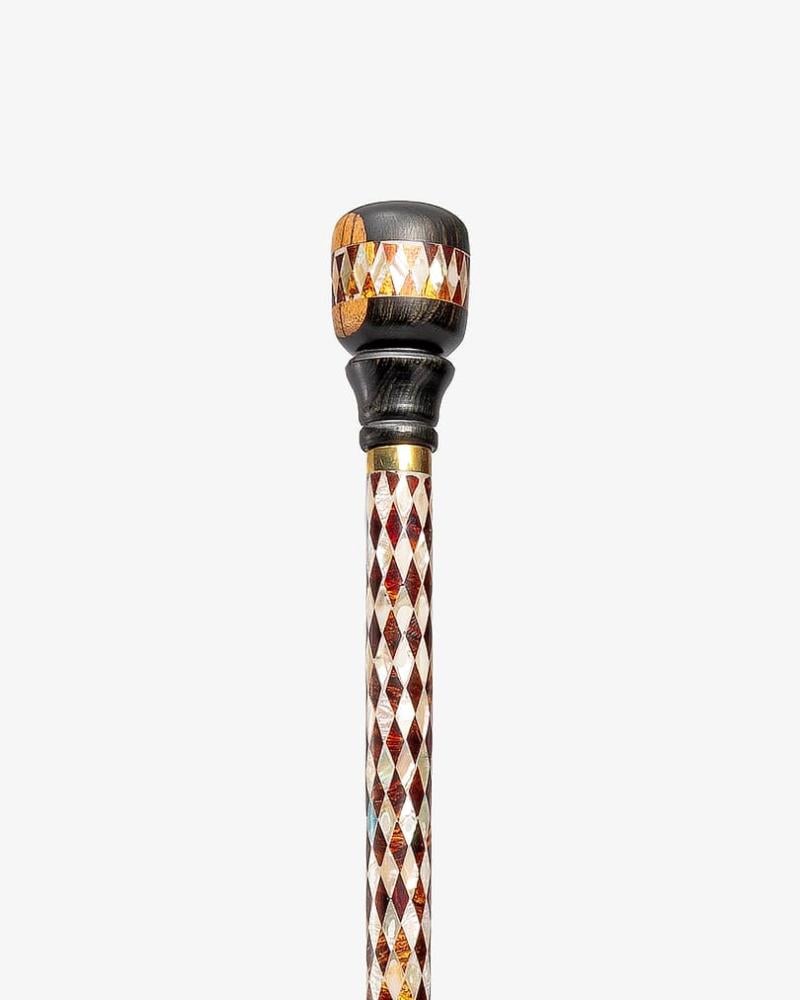عصا عكاز من خشب ايبانوس فاخر, منقوش بصدف طبيعي بطريقة احترافية ناعمة الملمس ,بمقبض دائري صناعة يدوية على ايدي امهر الحرفيين المتخصين في تصنيع عصا العكاز الاخشاب الطبيعية ,وتم صقلها بإحترافية متعددة الاستخدام خفيف الوزن طولها 97 سم,تصلح في المناسبات الاجتماعية لجميع الاذواق.