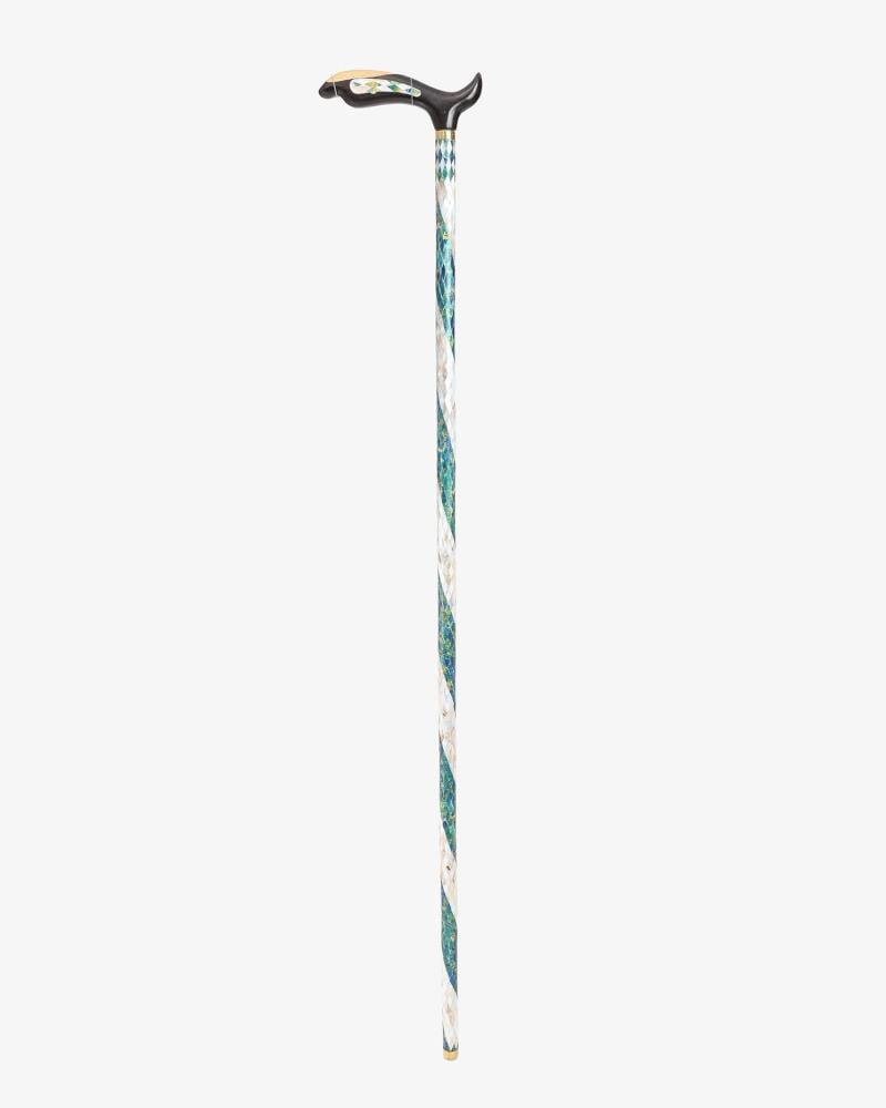 عصا عكاز من خشب ايبانوس طبيعي فاخر, مرصع بصدف طبيعي بطريقة احترافية ناعمة الملمس ,بمقبض طولي صناعة يدوية على ايدي امهر الحرفيين المتخصين في تصنيع عصا العكاز الاخشاب الطبيعية ,وتم صقلها بإحترافية متعددة الاستخدام نحيفة وطولها 96 سم ,تصلح في المناسبات الاجتماعية لجميع الاذواق.
