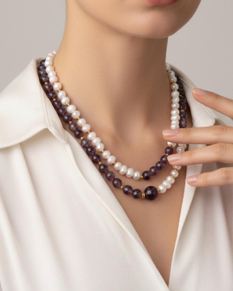 عقد الأناقة الملكية – تناغم اللؤلؤ والجمشت