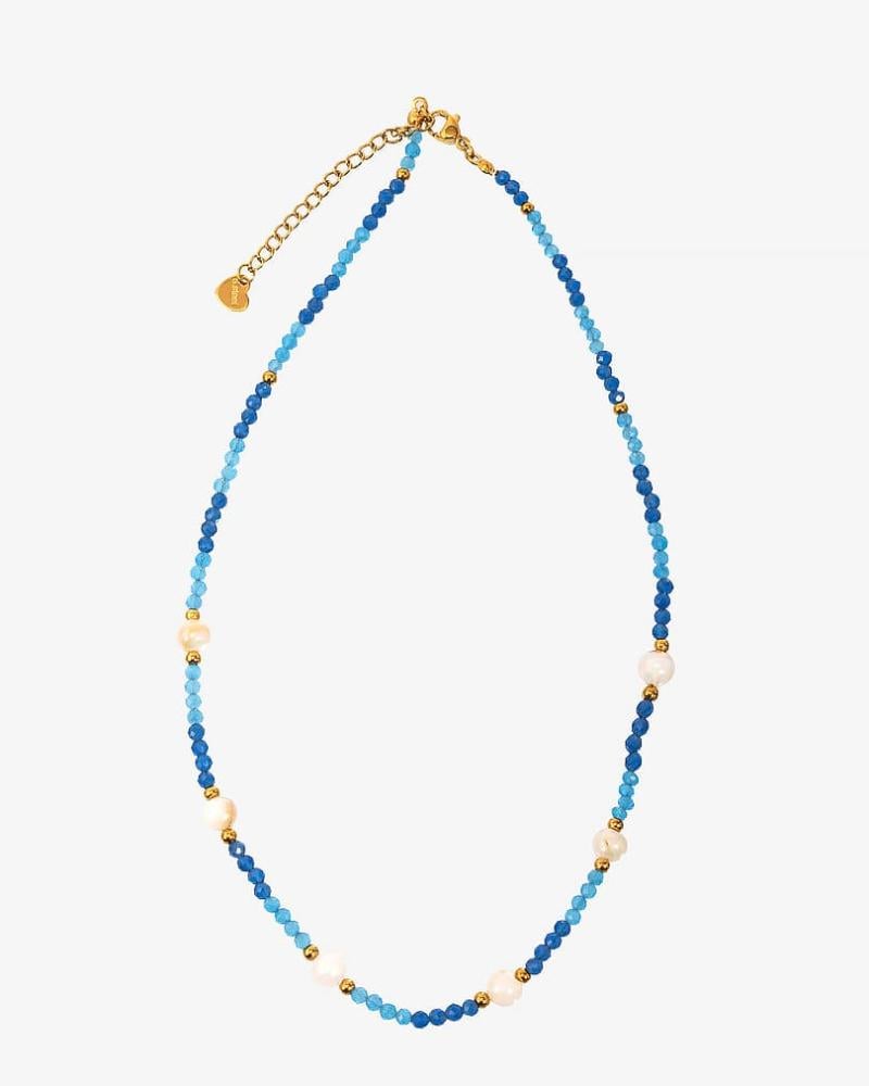 عقد الصدف والأحجار الزرقاء لإطلالة أنيقة ومشرقة
