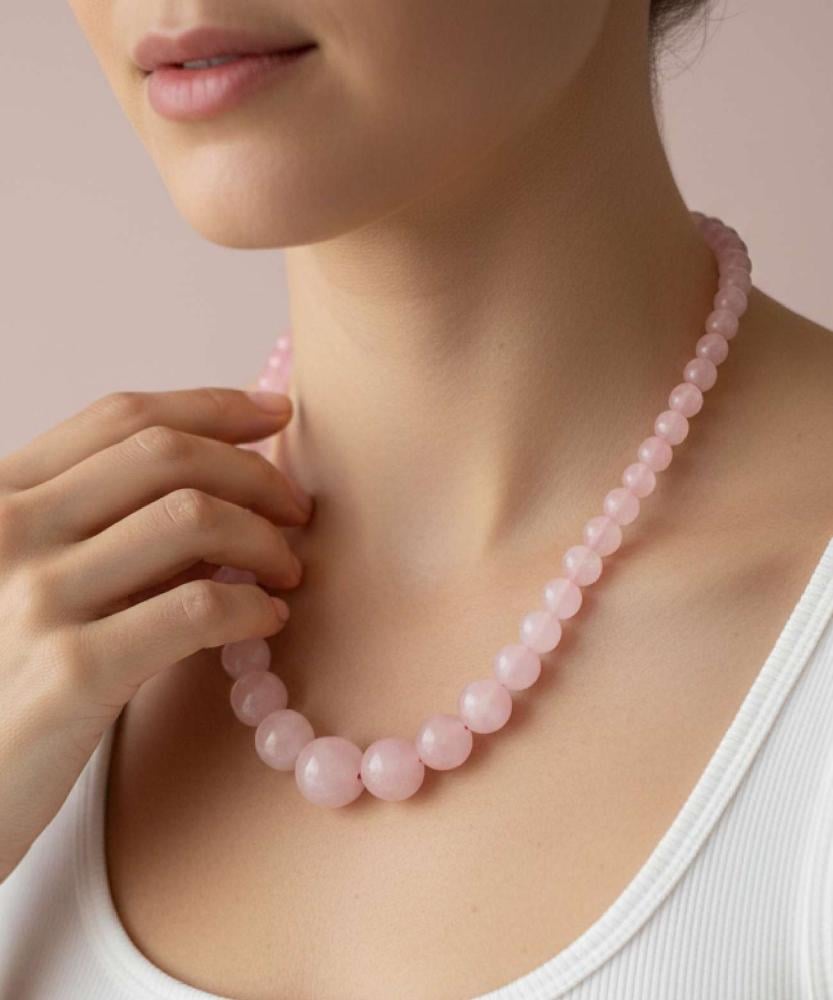 يُعرف الكوارتز الوردي بأنه حجر الحب والطاقة الإيجابية، مما يجعل هذا العقد ليس فقط إكسسوارًا جذابًا، بل أيضًا رمزًا للأنوثة والهدوء🌸💫. تصميمه الكلاسيكي والعصري يجعله مثاليًا للإطلالات اليومية والمناسبات الفاخرة، ليمنحك حضورًا مشرقًا وأنيقًا بكل بساطة🌷✨.
