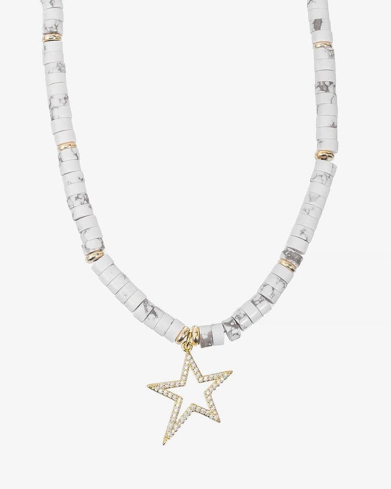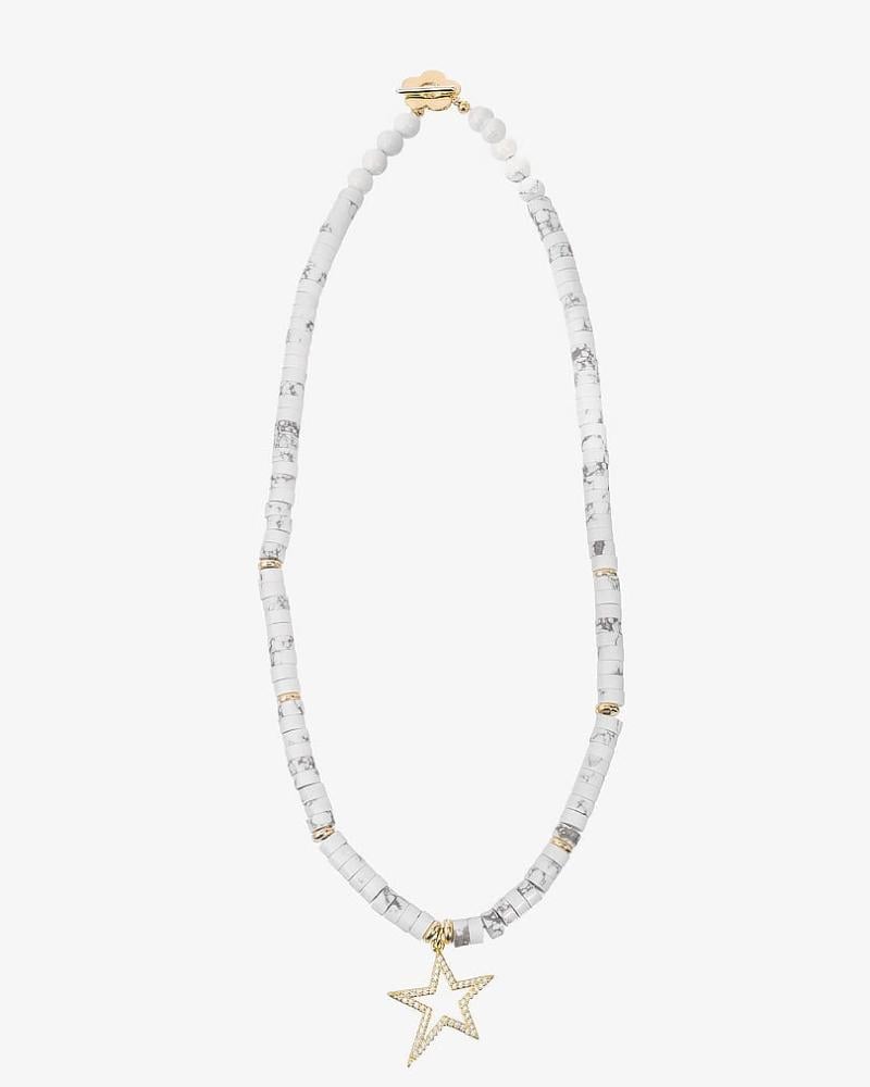 عقد نجمة الأناقة بحبات الهولايت الأبيض ولمسات ذهبية