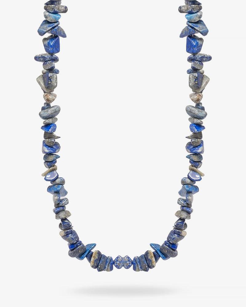 اختاري الأناقة والفخامة عقد نسائي من زمروود , نحن على يقين بأن هذا العقد سيكون قطعتك المفضلة الجديدة. يحيط هذا السلسلة حجر لازورد طبيعي بعروق بدرجات مختلفة تعطي جمال واناقة السلسلة. تميز بإغلاق على شكل خطاف يحافظ على تثبيته بإحكام حول رقبتك , مناسب لجميع الاذواق والاعمار .
