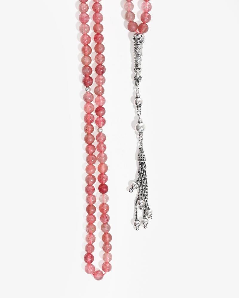 سبحة حجر الستروبيري ✨ أناقة فريدة بنغمة وردية راقية